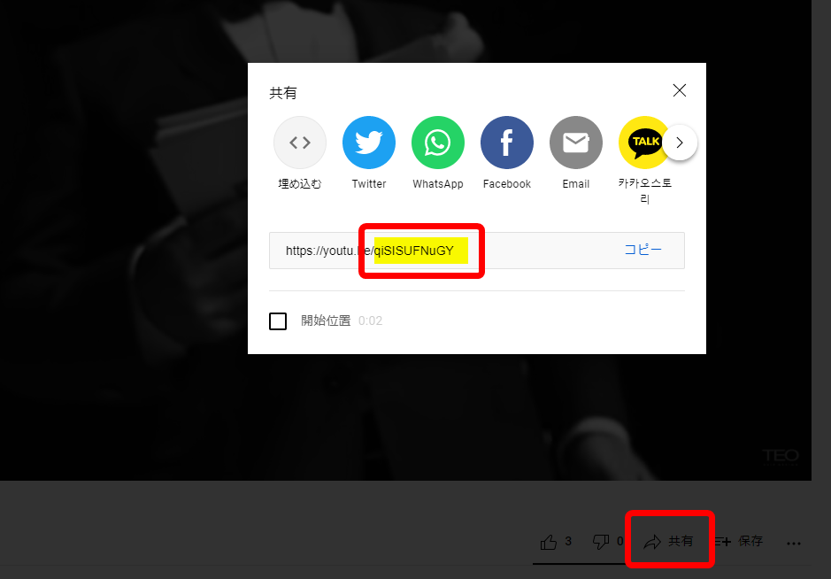 YouTube動画のIDは任意の YouTubeの「共有」ボタンで確認できます。