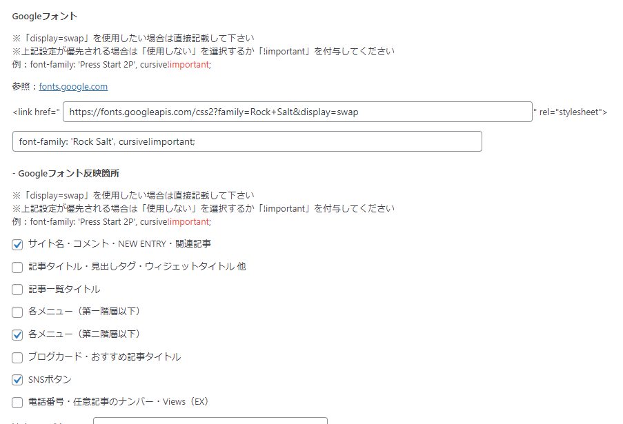 フォントはテーマ管理の「全体設定」>”フォントの種類”で設定しています。